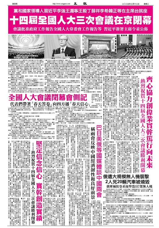 下午3時30分,李鴻忠宣佈:中華人民共和國第十四屆全國人民代表大會第三次會議閉幕。大會在雄壯的國歌聲中結束。