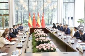 習近平強調,風物長宜放眼量。中西友好是兩國人民基於傳統友誼、現實需要、長遠利益作出的正確抉擇。雙方要繼續鞏固相互支持的政治基礎,相互信賴、相互尊重,在涉及彼此核心利益和重大關切問題上相互支持,特別是支持彼此維護主權和領土完整。中國14億多人口的消費升級需求和產業轉型潛力,將為世界經濟提供強勁動力。中方願同西班牙用好互利互補的合作優勢,發揮好經貿、科技合作機製作用,深挖新能源、高技術製造業、智慧城市等領域合作潛力,打造更多互利合作成果。要賡續相知相親的友好傳統,傳承好兩國人民深厚的“奧運情”、“熊貓情”,打造“歡樂春節”等新的“金字招牌”,擴大互派留學生規模,讓更多青年成為中西友好的生力軍。中西都是支持多邊主義和開放合作的積極力量,雙方要推動構建公正合理的全球治理體系,維護世界和平和安全,促進共同發展繁榮。
