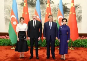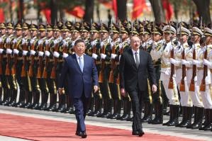 阿利耶夫抵達時,禮兵列隊致敬。習近平同阿利耶夫登上檢閱台,軍樂團奏中阿兩國國歌,天安門廣場鳴放21響禮炮。阿利耶夫在習近平陪同下檢閱中國人民解放軍儀仗隊,並觀看分列式。