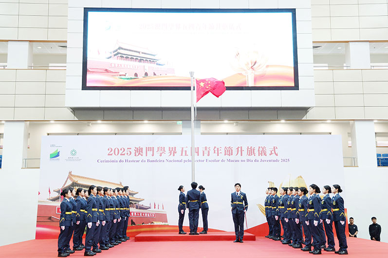 在澳門青年管樂團的洪亮演奏,伴隨著培正中學、嘉諾撒聖心英文中學、菜農子弟學校、澳門浸信中學、高美士中葡中學學生組成的合唱團帶領下,全體人員高唱中華人民共和國國歌,五星紅旗在澳門學界升旗隊旗手的拉動下緩緩升起,氣氛莊嚴。接著,澳門演藝學院與中葡職業技術學校合作的表演藝術班學生精心編排演繹《冼星海與黃河頌》,藉多元藝術將五四精神融入其中,以熱情傳遞愛國情懷,以才華展現青春風采;澳門中華總商會附設青洲中學學生演出舞蹈《中華之魂》,融入書法、龍舟及武術等中華文化元素,充分展現中華民族的獨特魅力與強大力量。