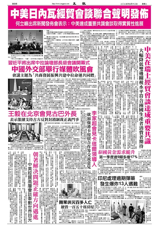 【中新社北京5月12日電】《中美日內瓦經貿會談聯合聲明》12日公佈。