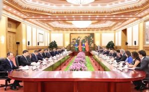 【中新社北京5月13日電】5月13日下午,中國國家主席習近平在北京人民大會堂同來華進行國事訪問的巴西總統盧拉舉行會談。