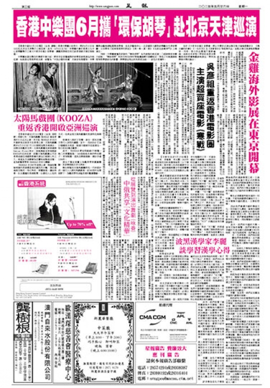 香港中樂團6月攜「環保胡琴」赴北京天津巡演