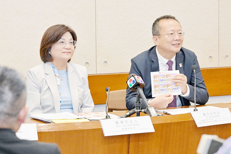 另外,郵電局今日(十三日)發行「中國銀行澳門分行七十五周年」新郵品,包括 一套四枚郵票、小型張和首日封。今次發行的一套四枚郵票售價為十七澳門元,以「回顧過往,展望將來」為主題,分別展現澳門中銀前身澳門南通銀行和中國銀行大廈建築外觀,同步發行的小型張則以北京中國銀行總行及澳門中國銀行大廈建築物為主圖,配以舞獅慶典元素,慶祝中國銀行澳門分行七十五周年。