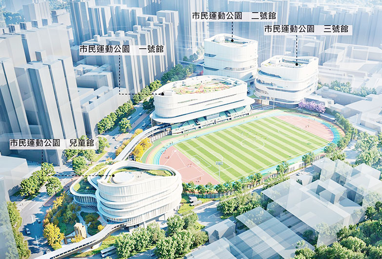市民運動公園地段面積為四萬零四百二十五平方米,按功能設有一至三號館、兒童館、戶外田徑場及地庫停車場,各場館提供包括游泳池、滑板場、攀岩場及各種球類運動設施等,戶外田徑場設有標準足球場、田徑跑道、跳高和跳遠設施。整個工程分兩區進行,今次開標的是第一區工程,將分為四個節點,包括拆卸第一區工程範圍內之原有建築物,建造一、二、三號館及其下方之地庫停車場,總施工期最長為一千零十四個工作日。