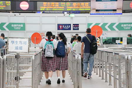 ※ 關閘入境大堂的學生專道(人工及自助)由早上6時至8時30分開放,離境大堂之學生專道(人工及自助)則由下午3時半至晚上8時開放;