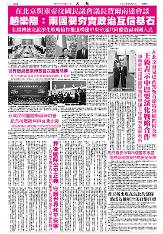 【中新社北京9月5日電】全國人大常委會委員長趙樂際5日上午在北京人民大會堂同出席紀念中國人民抗日戰爭暨世界反法西斯戰爭勝利80周年活動並訪華的東帝汶國民議會議長費爾南達舉行會談。