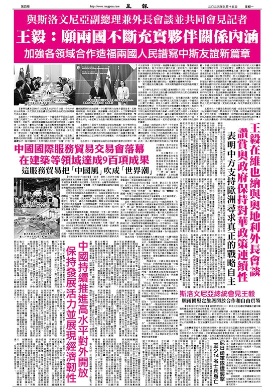 【新華社盧布亞納9月13日電】2025年9月13日,中共中央政治局委員、外交部長王毅在盧布亞納同斯洛維尼亞副總理兼外長法永會談。