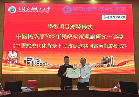 高勝文總結過去論壇和合作成果時表示,國際公共管理學術論壇多項成果以不同的形式送呈政府相關部門,為滬澳共建世界重要人才中心和創新高地提供參考依據。他同時公佈兩機構合作以來之學術成果,在澳門基金會、澳門文化發展基金、澳門霍英東基金會、高勝•文化基金會等澳門公立、私立基金會及企業資助下,成員已出版多部學術著作,主持、參與及完成國家與澳門多項學術項目,學術研究成果在多個領域多次獲獎,這體現雙方科研良好的發展勢頭,且備受各界認同及肯定。此外,適逢上海應用技術大學建校71周年,他在之前多年累積約澳門幣40萬元用作支持師生科研、少數民族、貧困生及境外生獎助學金等捐贈資金上,再次捐贈澳門幣31萬元教育發展基金予上海應用技術大學,至今累計向該校捐贈澳門幣71萬元,藉此捐資助學活動鼓勵師生積極向上,助力國家教育事業發展,以實際行動踐行愛國愛澳。