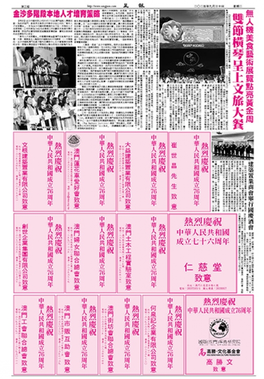 另外在9月30日至10月5日,於橫琴華發商都舉辦的“澳門國際文化美食節(橫琴站)”將集結超 100 家美食品牌,現場還設置 “鄉村振興特色產品展銷區”,呈上廣東陽江、茂名及貴州遵義的特產,“發現澳門美食區” 特裝展位,讓遊客感受粵澳餐飲文化交融的魅力。