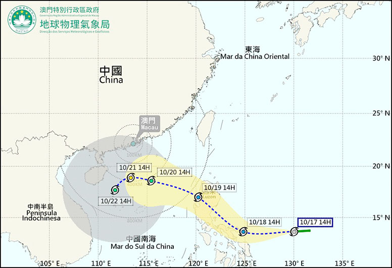 氣象局表示,位於菲律賓以東的熱帶低氣壓正逐漸發展,預料接下來週日(十九日) 稍後進入南海,受東北季風及熱帶氣旋共同影響,下週一起風勢頗大,風力達六至七級及有陣風,當局將密切監測及評估熱帶氣旋的發展,以及對本澳造成的直接影響。氣象局又稱,一股東北季風將於週日日間抵達華南沿岸,本澳風力將會逐漸增強,隨後氣溫逐漸下降,下週一至週三有幾陣雨,最低氣溫將下降至十八度左右。