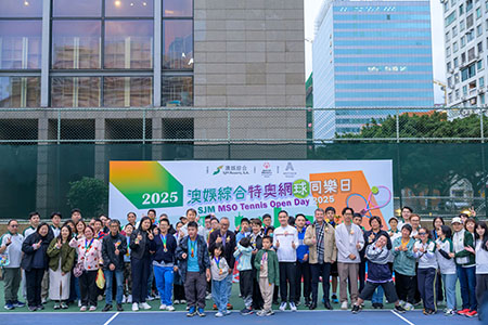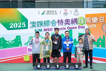 【特訊】由澳娛綜合度假股份有限公司(下稱「澳娛綜合」)冠名贊助、澳門特殊奧運會(下稱「特奧會」)主辦的「2025澳娛綜合特奧網球同樂日」於2025年12月13日圓滿舉行。此次活動匯聚多間學校及機構的參加者,共吸引逾50名參加者,共同享受網球運動的樂趣。活動場地由澳門雅辰酒店提供。