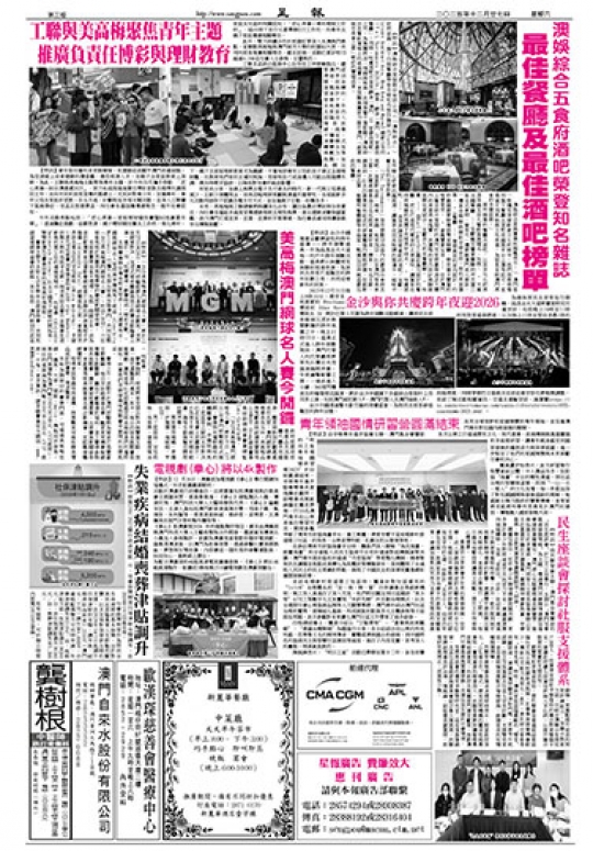 澳娛綜合五食府酒吧榮登知名雜誌