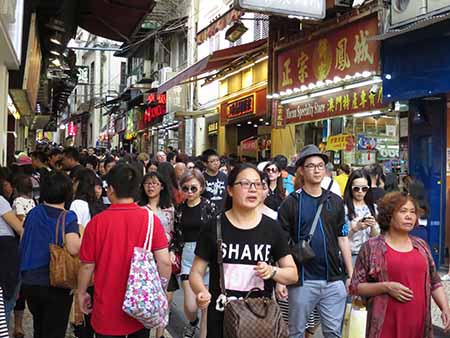 大批旅客來澳遊玩,其中內地旅客主要目的就是掃貨,衣履、手袋、手信、化妝品,以至奶粉、尿片均熱賣,在旅遊區有商戶反映,今年五一假日人流與往年相若,但生意就較去年稍為上升。亦有電子產品負責人稱,近兩年高消費的旅客減少,生意亦受到一定沖擊,但今年五一假期生意漸有起色,預計生意額比去年同期增加約一至兩成。有手信店負責人稱,「人流比早兩日多好多」,預計生意額增加五成。
