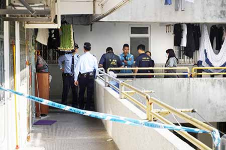 司警接報到場調查,經調查後,在早上約八時五十分把疑兇帶走,二十多歲疑兇被黑色頭套幪頭,鎖上手扣押上司警車送走。司警勘查組人員在上午近九時抵達事發單位取證,檢獲一柄懷疑是凶器的生果刀,司警表示初步懷疑這對父子因家庭問題發生爭執,在凌晨五時多,五十五歲的父親懷疑被兒子用生果刀割傷頸部,經送院搶救無效死亡,司警暫時將案件列作嚴重傷害身體致他人死亡案處理。