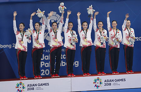 報道指,中國花樣游泳隊實力超群,在亞洲幾無對手可言。集體自由自選項目中,中國隊在北京奧運獲得銅牌,又在倫敦和里約連續兩屆摘銀,成為世界花游霸主俄羅斯強有力的競爭對手。此番征戰亞運,中國隊在技術自選比賽中帶來《美麗的貝加爾湖》,這套2年時間打磨的節目獲得92.5062分,位列參賽各隊榜首。