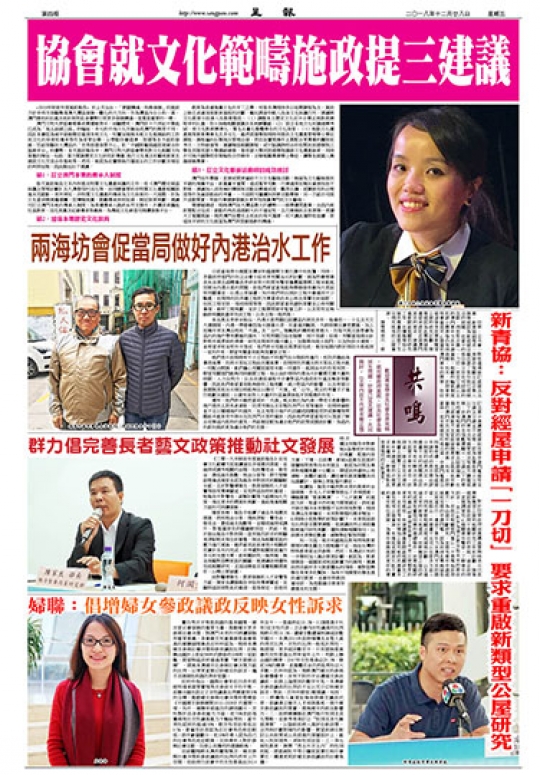 是次施政報告文本內有提及物質文化遺產保護的工作,如《澳門歷史城區保護及管理計劃》及九澳聖母村活化等,但同樣重要的非物質文化遺產相關跟進未見蹤影。眾所周知,非物質文化遺產的傳承為文化保育的一大挑戰,作為文化當局應高瞻遠矚,從積極推廣、鼓勵傳承原則出發,制定保育規劃,建議可訂立澳門本地的傳承人制度,為非遺傳承人提供系列支援外,亦讓其承擔起社區教育、活化推廣及紀錄傳承等義務,為傳統文化締造可持續發展平台。