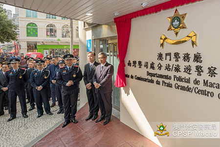治安警察局南灣警司處分站及旅遊警察服務中心啟用儀式在昨日上午十一時舉行,由保安司司長黃少澤、警察總局局長馬耀權及治安警察局局長梁文昌主持。