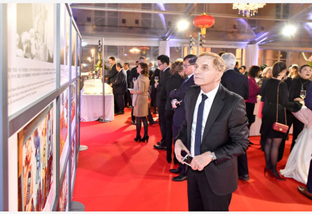 法國憲法委員會主席法比尤斯、法國國民議會法中友好小組主席陳文雄等嘉賓出席招待會。招待會期間還安排了豐富多彩的文藝演出,並請嘉賓觀看了反映中法關係55年發展歷程的圖片展覽。