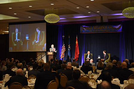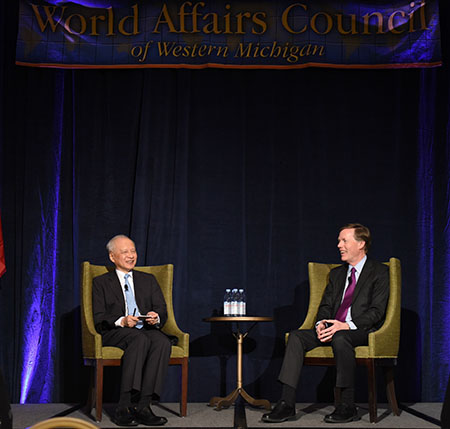 世界事務理事會西密歇根分會8日在大急流城舉辦中美建交40周年對話會。崔天凱應邀與美國前副國務卿伯恩斯就中美關係及兩國經貿問題、人文交流等對話交流,並回答在場嘉賓提問。來自美政、商、學、媒體等各界人士約500人出席活動。