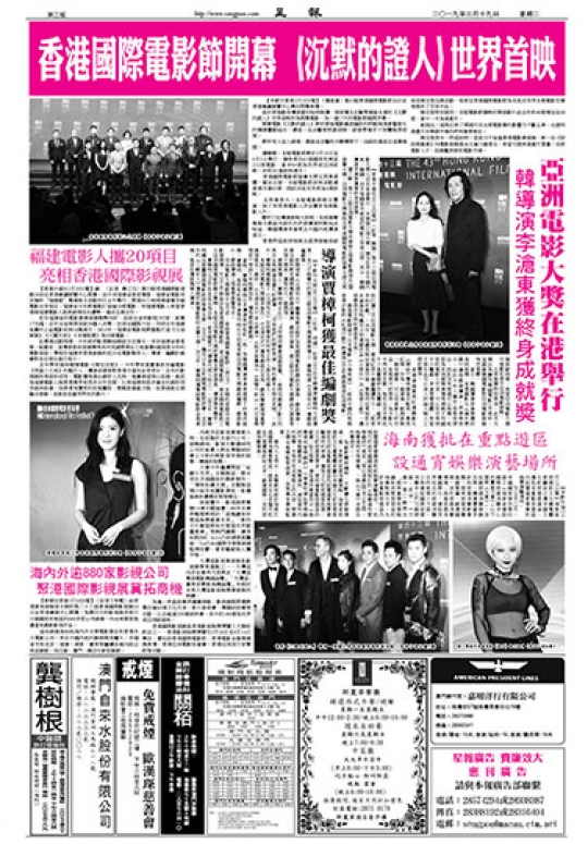 由好萊塢動作導演雷尼哈林執導、張家輝及任賢齊領銜主演的《沉默的證人》世界首映作為開幕電影,為一連15天的電影節揭開序幕。