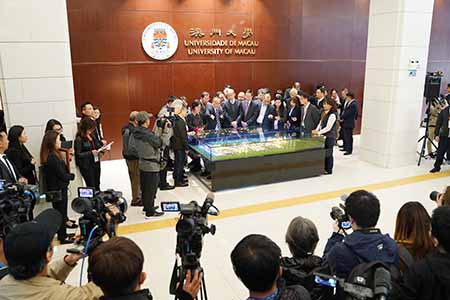 韓國瑜昨日中午結束訪澳行程,經北安碼頭離開前接受記者提問。問及對於澳門大學發展的看法,韓國瑜表示,澳門大學由一片養蠔土地,短短的十年間由醜小鴨變成天鵝,硬體建築上做得非常好。他表示,澳門大學能夠專攻幾項出類拔萃的獨門學院,如中醫藥學,是很聰明的做法,因為澳門大學是比較新的大學,專攻幾個重點項目,使得澳門大學在某些科學的領域能夠獨列全球前列,這個發展策略很棒。