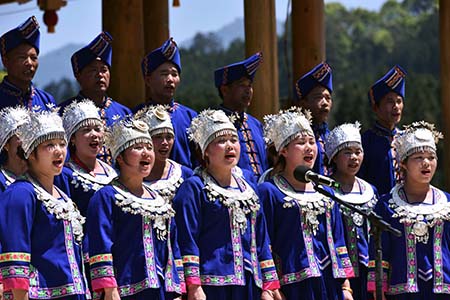 李麗丹、歐陽文浩在江西上高報道:江西省上高縣敖山鎮洋林歸僑少數民族聚居村有瑤、侗、傣、壯、京、苗、漢7個民族的歸僑村,每年“三月三”都會上演一場民俗文化“盛宴”。