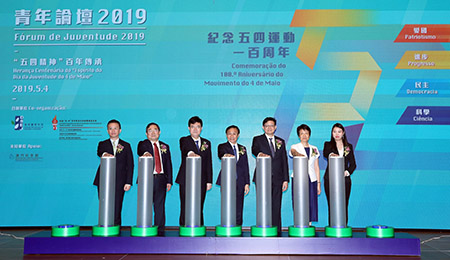 「澳門學界五四青年節升旗儀式」5月4日早上在澳門綜藝館舉行,並首次由澳門學界升旗隊負責升旗,逾2,000人出席。隨後,由教青局與紀念「五.四」青年節系列活動籌備委員會合辦的「青年論壇2019」於澳門科學館順利舉行。論壇以「『五四精神』百年傳承」為主題,邀請北京和粵港澳大灣區的專家學者及粵港澳大灣區各城市的青年代表參加,逾400人出席。