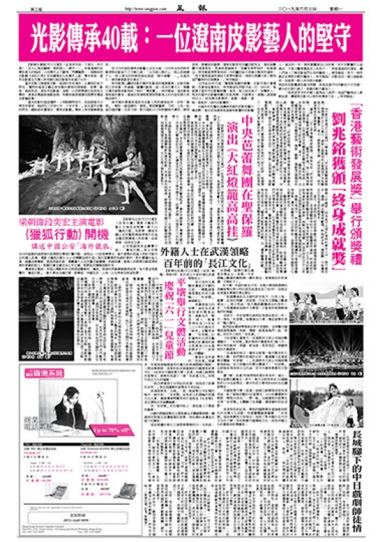 【新華社瀋陽5月31日電】(記者李宇佳、丁非白、洪可潤)「志大心高武藝精,要把惡人一掃平……」伴著連綿的弦樂和高亢的唱詞,只見雙手上下翻飛、閃轉騰挪,一場精彩的皮影戲《武松打虎》徐徐鋪陳在白色幕布上面。幕布背後,蓋州皮影第五代傳人林世敏已與皮影相伴走過了41年。