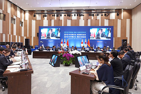 會議上,韓國文化體育觀光部長官朴良雨,日本文部科學大臣柴山昌彦、國土交通大臣石井啓一希望,加强文化與旅遊的融合;促進文化產業的發展;加快「東亞文化之都」建設和城市互動;藉中日韓三國舉行奧運會、冬奧會和殘奧會的契機,推動三國文化、旅遊的交流與發展;增進非物質和物質文化遺產傳承與保護的合作;創作更多交流渠道,讓三國青年文化藝術人才互學共進;強化放遊人才的培養;透過三國旅遊合作促進東北亞地區的穩定、和平與繁榮。香港民政事務局局長劉江華在發言中簡介了香港與日本、韓國的文化交流情況,並邀請日本、韓國繼續在香港舉辦各類文化活動,展示兩國的文化風采;香港商務及經濟發展局副局長陳百里表示,香港早前在東京舉行了粵港澳大灣區旅遊推廣活動,願繼續推動中日韓三國人民旅遊交流,促進民心相通。