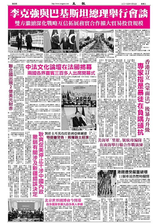 【中新社北京10月8日電】(記者 張蔚然)中國國務院總理李克強10月8日下午在人民大會堂同來華出席2019年中國北京世界園藝博覽會閉幕式並進行工作訪問的巴基斯坦總理伊姆蘭•汗舉行會談。