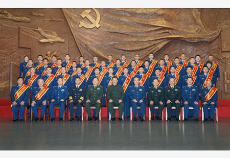 在熱烈的掌聲中,習近平親切接見空軍先進單位和英模代表,勉勵他們珍惜榮譽、再接再厲,爭取更大光榮。