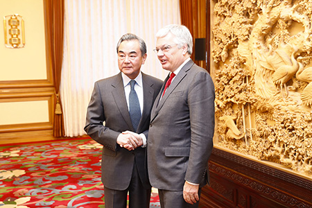 王毅表示,米歇爾首相和你將分別出任歐洲理事會主席和歐盟委員會司法委員,這表明比利時將在歐盟中發揮更重要作用。相信你們在新的重要崗位上,會為中歐關係的健康發展作出更大貢獻。