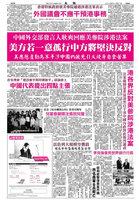 港各界反對美參院涉港法案 法案顛倒是非混淆黑白干涉中國內政對此強烈譴責