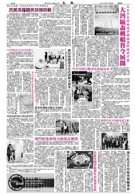 【特訊】由澳門特別行政區政府體育局及縱橫四海航海賽事管理主辦,澳門特別行政區政府海事及水務局及澳門風帆船總會協辦的「2020粵港澳大灣區盃帆船賽暨澳門盃國際帆船賽」將於1月9日至12日舉行。來自世界各地逾三百名國際帆船選手抵澳備戰賽事,力爭佳績。