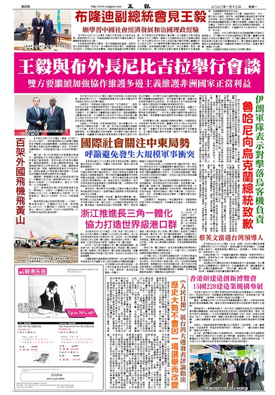 【中新社北京1月12日電】中國外交部官網12日發佈消息稱,當地時間1月11日,布隆迪副總統布托雷在布瓊布拉會見中國國務委員兼外長王毅。