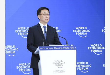 【中新社瑞士達沃斯1月21日電】(記者 彭大偉)當地時間21日,中共中央政治局常委、國務院副總理韓正出席達沃斯世界經濟論壇2020年年會,發表題為“共建開放型世界經濟 推動全球可持續發展”的致辭。
