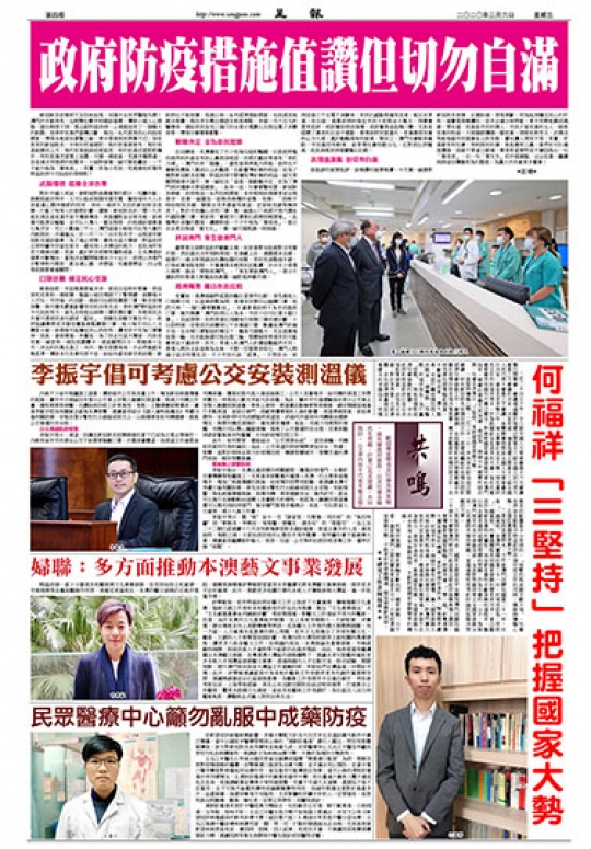 新春佳節,市面理應喜氣洋洋,居民四出拜年聚會,然而突如其來的一場疫情,整個小城彷彿按下了暫停鍵,寂靜得令人可怕,市民唯一的活動,就是四出排隊購買口罩。肺炎疫情突襲,無可避免嚴重影響市民的日常生活,幸好澳門特區政府今次抗疫有方,首先及時推出保障口罩供應計劃,本地居民及外僱可憑居民身份證或「藍咭」,到衛生局轄下衛生中心、政府協議藥房或多個社團服務點購買口罩,每人每次可以八元購買十個。該措施可起穩定民心的作用,讓市民不用為口罩費神。其後,當疫情進一步蔓延,為了防止社區大爆發,行政長官賀一誠宣佈一項抗疫霹靂令,就是關閉四十一間賭場十五天,涉及約四萬名員工。另外,肺炎疫情洶洶,亦必然重創本地經濟,導致各行各業叫苦不迭,紛紛向當局發求救訊號。新政府也不敢怠慢,迅速公佈一系列經濟援助措施,包括減免稅務及規費、推行中小微企援助及利息補貼、多發一次六百元的醫療券、補貼居民住宅三個月的全部水電費以及推出電子消費券等,博得社會陣陣掌聲。