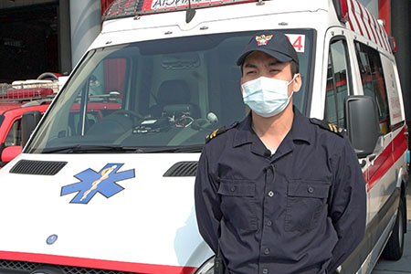 消防局負責運送病人到醫院求醫,在新冠肺炎疫情影響下,他們的工作量激增。負責救援工作的消防員李文中指,現在是非常時期,出車的頻率非常高,感覺非常辛苦,幸好有很多後勤同事默默為他們支援,而除後勤工作、物資補給外,最重要是大家要堅守崗位,做好本份。