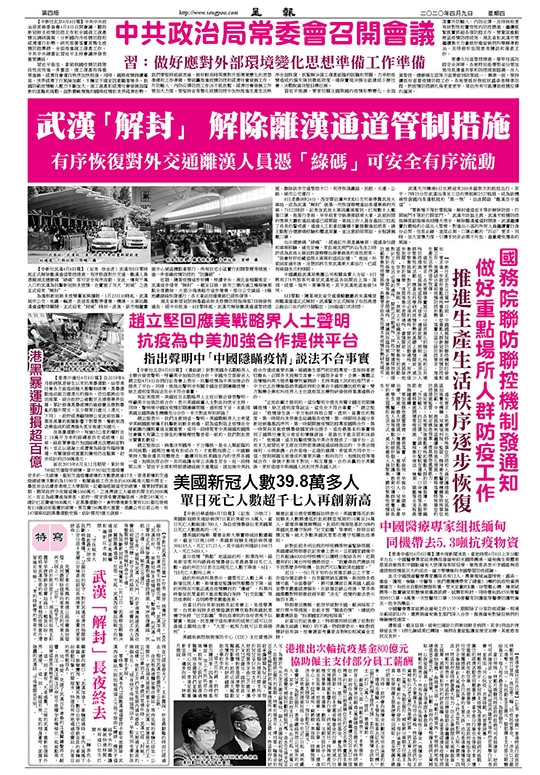 【中新社北京4月8日電】中共中央政治局常務委員會4月8日召開會議,聽取新冠肺炎疫情防控工作和全國復工復產情況調研匯報,分析國內外疫情防控和經濟運行形勢,研究部署落實常態化疫情防控舉措、全面推進復工復產工作。中共中央總書記習近平主持會議併發表重要講話。