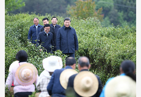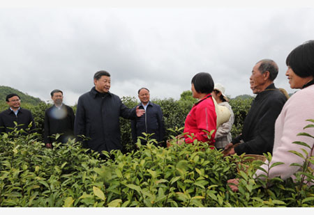 【中新社北京4月21日電】中共中央總書記、國家主席、中央軍委主席習近平21日來到陝西省安康市平利縣老縣鎮,在錦屏社區、鎮衛生院、中心小學和茶園考察當地脫貧攻堅等情況。