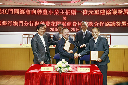 另外,2018年2月28日江門同鄉會舉行向善豐小業主捐贈一億元重建協議簽署儀式,其佈景板上與簽署文件封面亦寫了「捐贈」字眼。是「墊支」不用還,還是「捐贈」給小業主,兩者其實沒有太大分別,也是給予善豐一億元重建後,以後再算。而同鄉會的新聞稿指,近年來經濟下行,再加上今年新冠肺炎疫情的出現,各行各業在經營上都遇到史無前例的困難,有些情況還屬始料不及之差,同鄉會也難倖免,導致原有的墊資款項劃撥現時難以落實。不過同鄉會在去年4月後未再支付重建費用,那時候距離發生新冠肺炎,還有大半年時間,以此為由有點牽強。