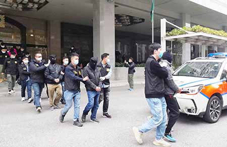 司警於早前接獲檢察院通知,要求調查一宗偽造文件案。調查發現有人涉嫌假僱用並收受利益,涉及本澳三間外僱中介公司,其中兩間已結業,經分析鎖定目標。本月十五及十六日採取行動,司警分別在花王堂區一間外僱中介公司,皇朝區、黑沙環、台山及氹仔的十個住所,拘捕涉案集團主腦古女、黃女、陳女主腦,以及四骨幹成員,同時拘捕九名涉案越南女外僱。同日下午,另一名主腦李姓男子經港珠澳口岸入境被捕。司警行動中亦檢走一批證物。