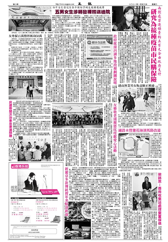 對於新冠病毒疫苗接種工作,歐陽瑜表示,特區政府正研究為接種新冠病毒疫苗人士購買保險,對象為本澳居民,或包括例如外僱在內,初步估算,每名接種者連同 2劑疫苗及保險費,預料共約 500元,費用由政府支付,具體保費和保額等仍要視乎最終購買疫苗數量而定,並已經與保險業界商討,當有合適的方案會向社會公佈。