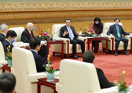在聽取專家發言後,李克強表示,剛剛過去的一年,新冠肺炎疫情給包括中國在內的世界各國帶來嚴重衝擊。在以習近平同志為核心的中共中央堅強領導下,經過全國人民共同努力,中國經濟取得了來之不易的成績,全年實現了正增長,外國專家為此也作出了積極貢獻。我們根據疫情衝擊特點,主要圍繞市場主體的發展和基本民生的需求,精準有效制定和實施宏觀政策,既及時果斷又不搞“大水漫灌”,使經濟得以較快恢復和發展,主要靠的是市場力量和市場主體活力,這也使得中國以合理政策代價取得較好的實際成效。