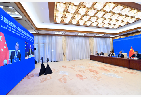 【中新社北京2月8日電】中國國務委員兼外長王毅8日同歐盟外交與安全政策高級代表博雷利舉行視頻會議。