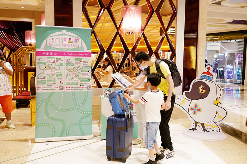 【特訊】為進一步推廣面向旅客市場的「精品遊」和本地遊項目「澳人食住遊」,以帶動社區旅遊,促進旅遊業復甦,旅遊局在本地六家酒店/綜合度假村內特設諮詢櫃檯,方便旅客和居民查詢相關資訊及現場報名參團。旅遊局透露,受內地疫情反覆影響,七月整體訪澳旅客日均約二萬五千人次,期望暑假訪澳旅客數字能保持七月水平。