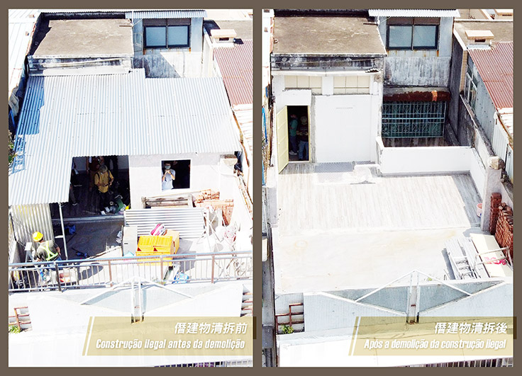 第二次行動清拆的兩個僭建物位於關前後街一低層樓宇天台,土地工務運輸局接獲投訴開立卷宗跟進,經巡查發現其中一個僭建物有翻新跡象,且另有投訴指僭建物導致滲漏水問題,局方隨後展開相關預審及聽證程序,並於自願清拆屆滿後展開行動,清拆仍然存在的僭建物。