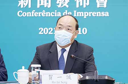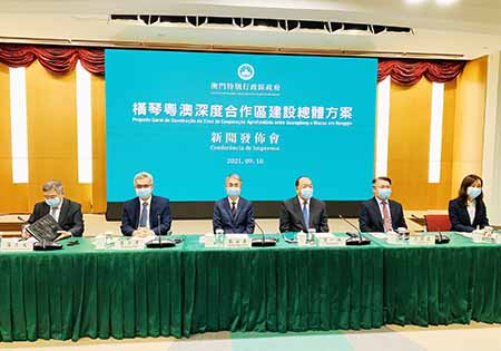 賀一誠昨日聯同五位司長出席在政府總部舉行的《橫琴粵澳深度合作區建設總體方案》新聞發佈會。賀一誠表示,橫琴粵澳深度合作區建設對促進澳門經濟適度多元、便利澳門居民生活就業、推動粵港澳大灣區高質量發展、豐富「一國兩制」實踐具有重要意義,是促進澳門更好融入國家發展大局的重大舉措。