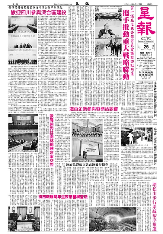 賀一誠續說,在科技創新方面,澳門將以四個國家重點實驗室為依托,積極推進「廣州-深圳-香港-澳門」科技創新走廊建設,加強成渝地區科創中心與大灣區科創中心共建合作。在經貿會展合作方面,探討與泛珠省區共同開展「一會展兩地」合作模式,促進優勢互補、客源互引;鼓勵泛珠省區企業來澳設立業務總部和分支機構,利用澳門平台優勢拓展海內外市場。在文化體育產業發展方面,加強與泛珠各省區的文化交流合作,共同搭建聯合辦賽平台,推動舉辦更多高水平文化體育品牌盛事活動。